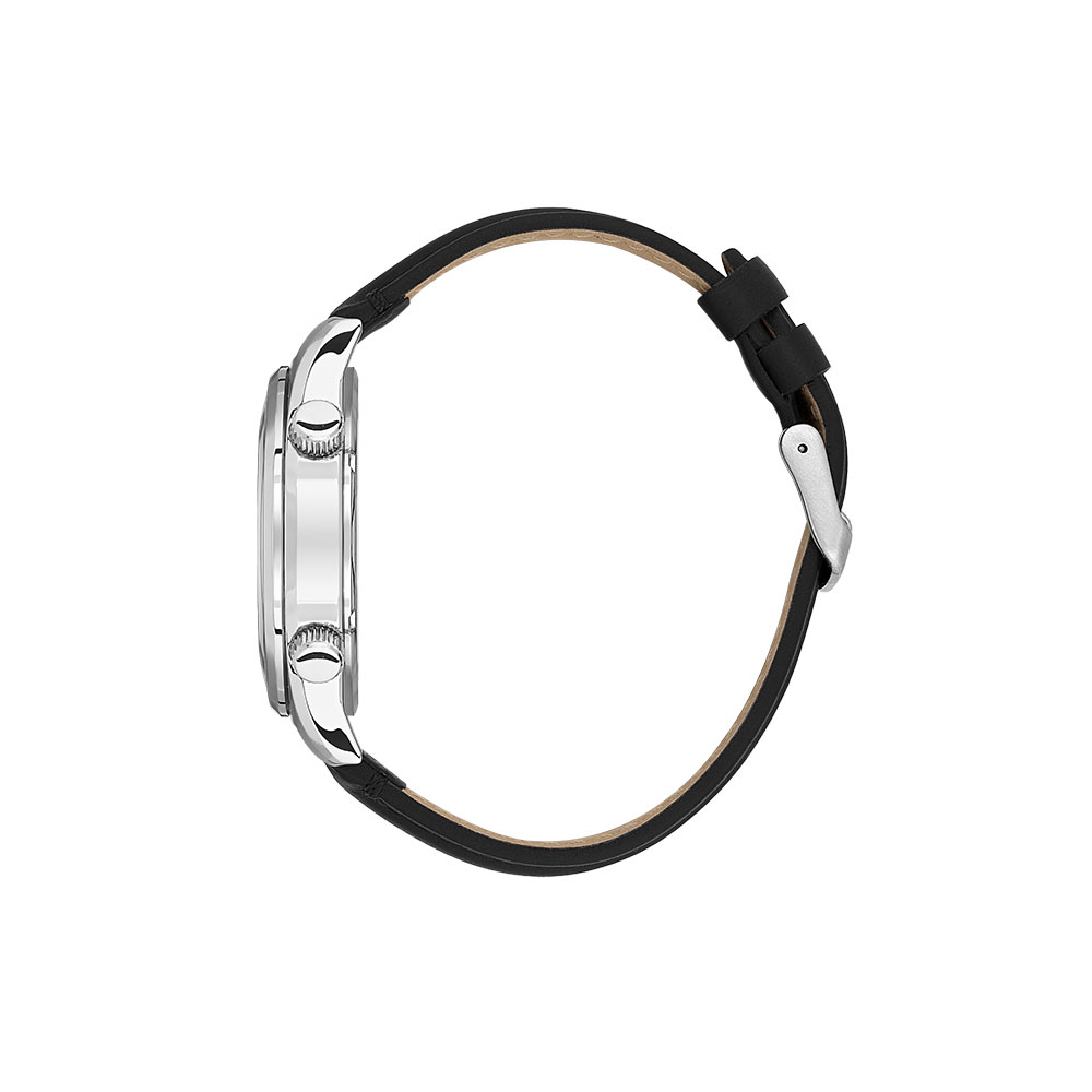 Dotat cu un mecanism quartz japonez Miyota 2315 3, acest ceas ofera precizie si durabilitate, avand o abatere de doar ±20 secunde pe luna. Afisajul analogic, protejat de un cristal mineral rezistent, impreuna cu o curea din piele neagra, confera un aspect sofisticat si versatil.