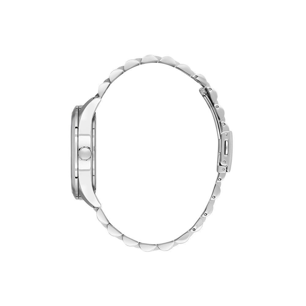 Cu un mecanism quartz japonez de inalta precizie, ceasul asigura o abatere minima de ±20 secunde pe luna. Afisajul analogic al ceasului este protejat de un geam din cristal mineral, rezistent la zgarieturi, iar carcasa rotunda, cu un diametru de 43 mm, este realizata din aliaj metalic argintiu.