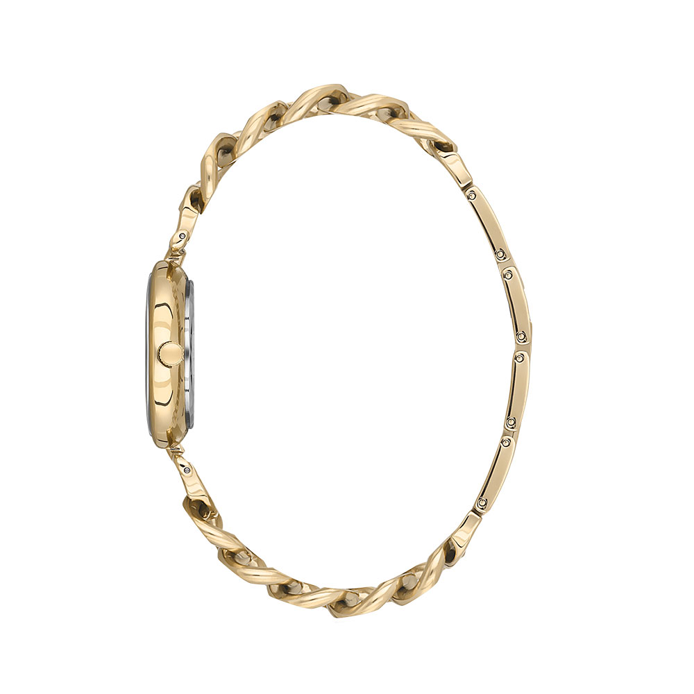 - Afisaj analogic cu un cadran argintiu elegant, completat de o carcasa aurie care adauga un plus de rafinament.