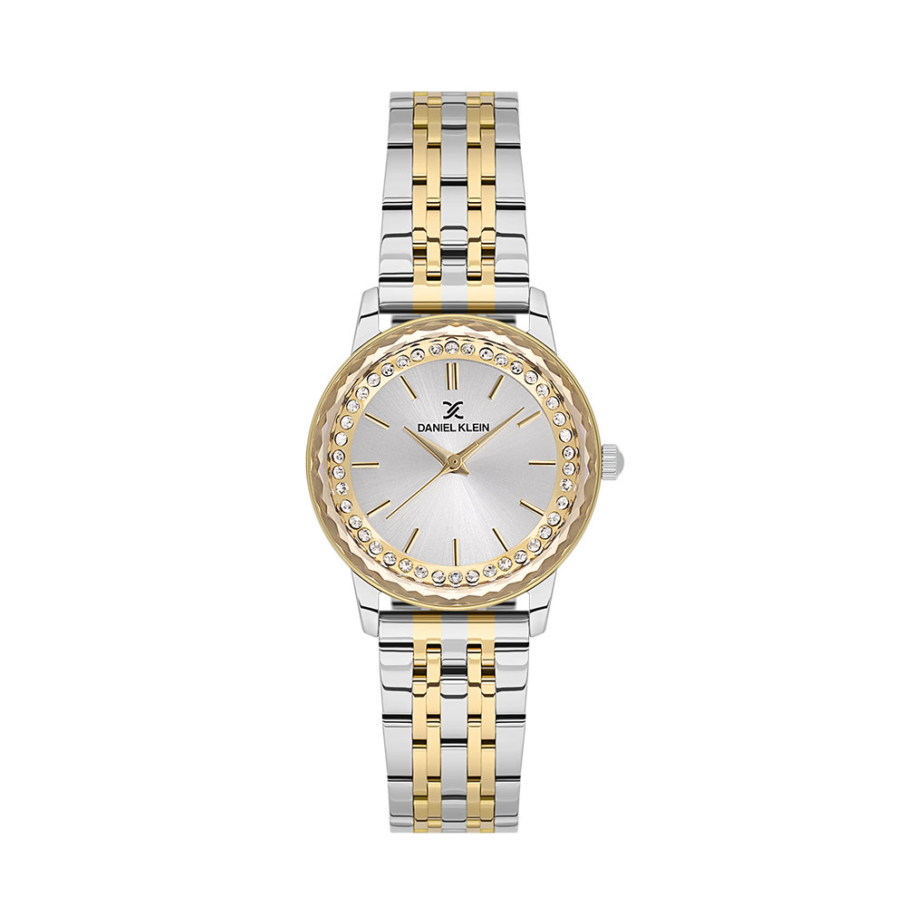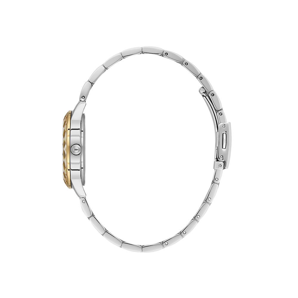 Cu un cadran argintiu luminos, incadrat de cristale stralucitoare si o bratara din otel inoxidabil cu detalii in aur, acest ceas este conceput pentru a completa orice tinuta, de la cea casual la cea de seara. Mecanismul quartz japonez asigura o precizie remarcabila, cu o abatere de doar ±20 secunde pe luna, iar rezistenta la apa de 3 atm il face ideal pentru utilizare zilnica.