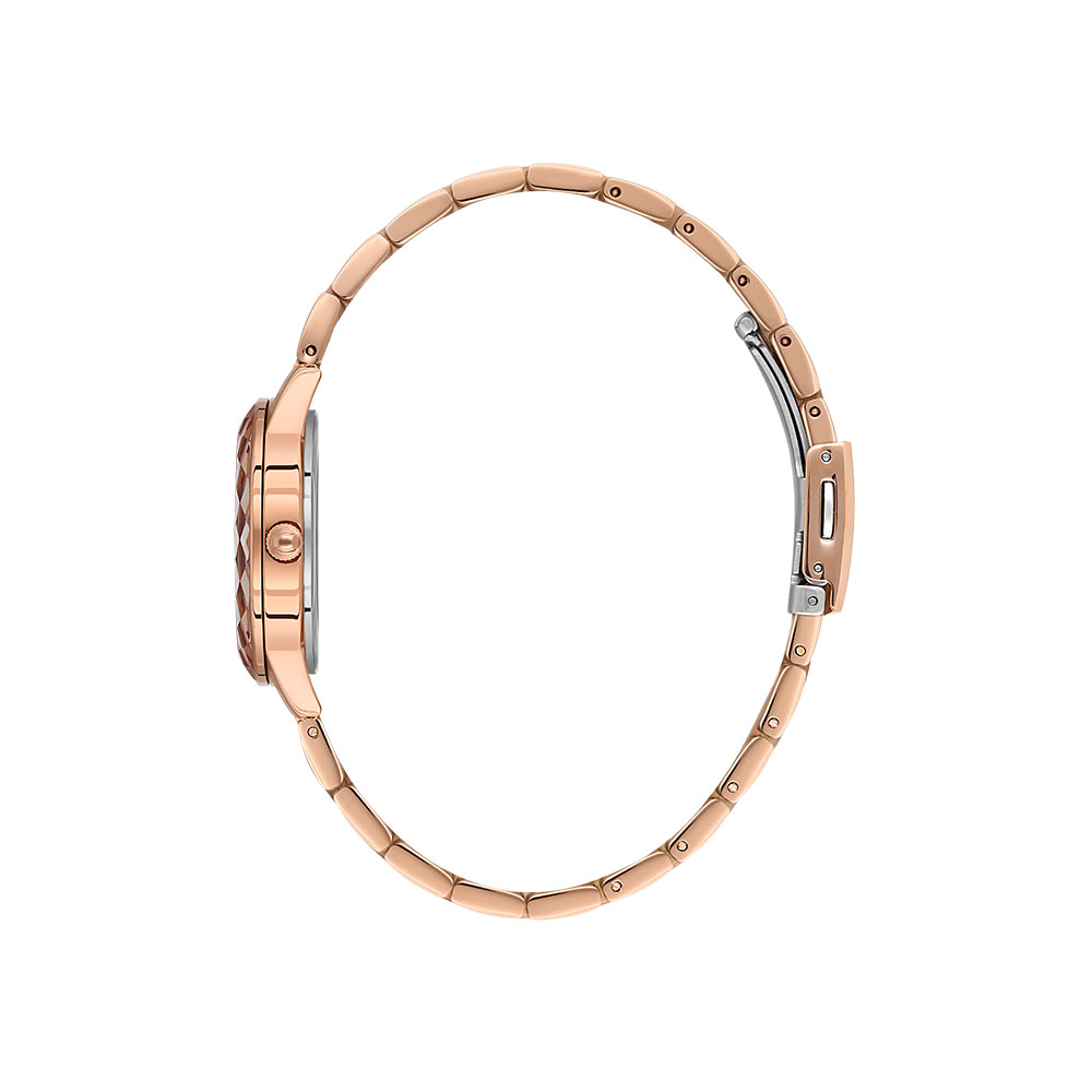 Carcasa rotunda de 32 mm este realizata din aliaj metalic rezistent, in timp ce geamul din cristal mineral protejeaza ceasul de zgarieturi si socuri usoare. Bratara confortabila din otel inoxidabil se inchide cu un sistem de tip fluture, oferind siguranta si stil. Mecanismul cu quartz japonez asigura o abatere minima de timp, fiind un partener de incredere pentru gestionarea timpului tau.