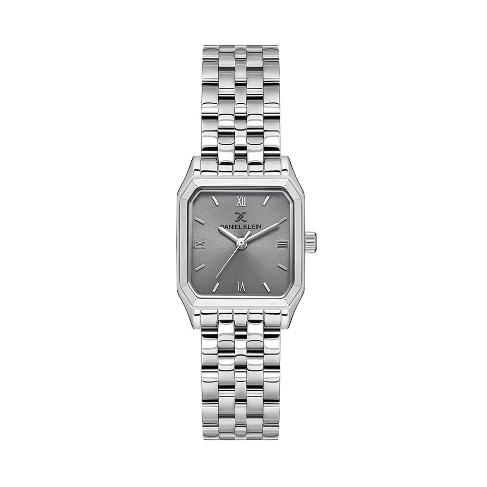 Ceasul de dama Daniel Klein Premium DK.1.13877.1 imbina rafinamentul cu functionalitatea, fiind alegerea ideala pentru femeile care apreciaza eleganta discreta in accesoriile de zi cu zi. Cu un design dreptunghiular si linii fine, acest model se remarca printr-o carcasa argintie din aliaj metalic si un cadran gri mat, accentuat subtil de marcaje romane si indicatoare argintii.
