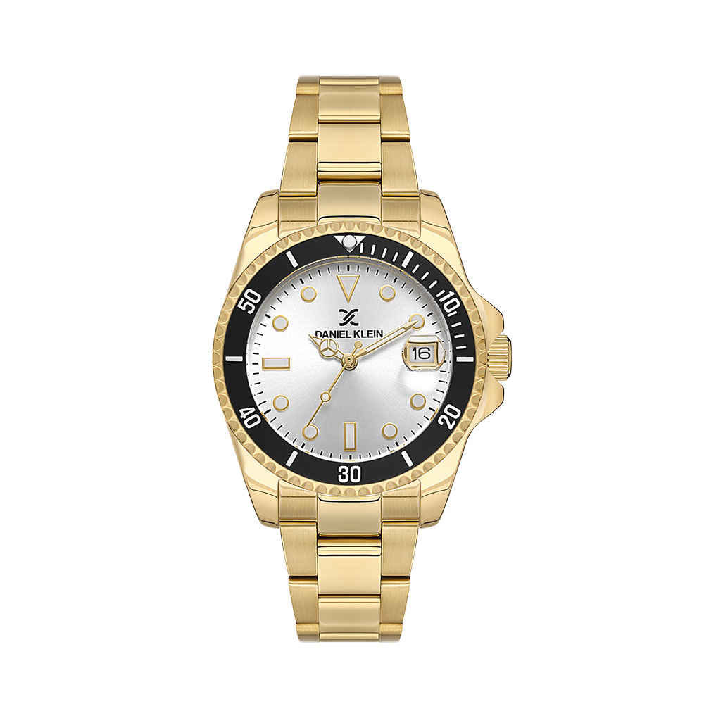 Ceasul de dama Daniel Klein Premium DK.1.13880.4 imbina perfect eleganta cu functionalitatea, fiind alegerea ideala pentru femeile care doresc un accesoriu de impact in tinutele de zi cu zi. Cu un design sportiv si detalii rafinate, acest model se remarca prin bratara aurie din otel inoxidabil si cadranul alb argintiu incadrat de o luneta neagra, oferind un contrast vizual deosebit.