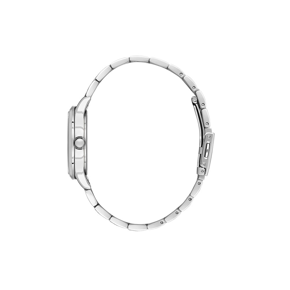 Bratara argintie din otel inoxidabil, cu sistem de inchidere tip fluture, completeaza aspectul elegant si asigura o fixare sigura. Mecanismul japonez Miyota 2035 cu afisaj analogic garanteaza o precizie fiabila, cu o abatere de ±20 secunde/luna.