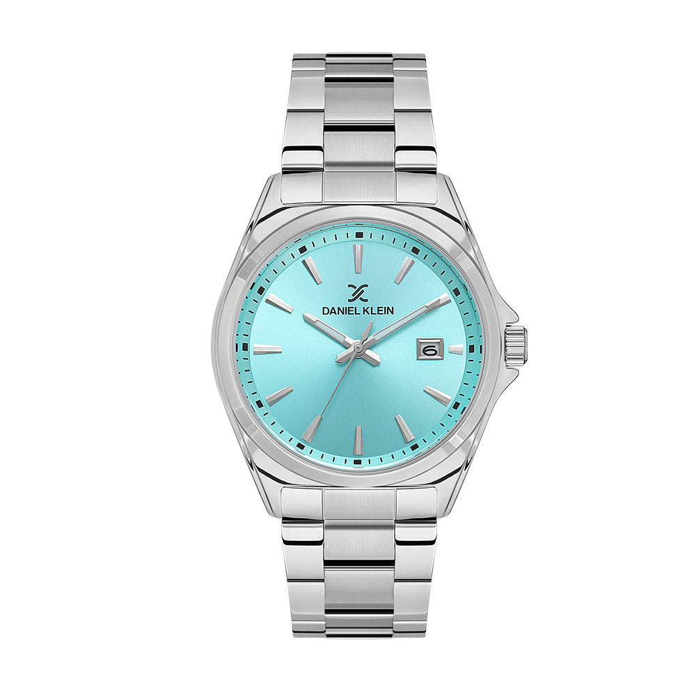 Carcasa rotunda din aliaj metalic argintiu are un diametru de 43 mm si o grosime de 11 mm, oferind un profil robust dar confortabil. Cadranul in nuanta distinctiva Tiffany Blue adauga o nota de originalitate si prospetime, fiind completat de marcaje argintii si indicatori vizibili pentru o citire rapida a orei.
