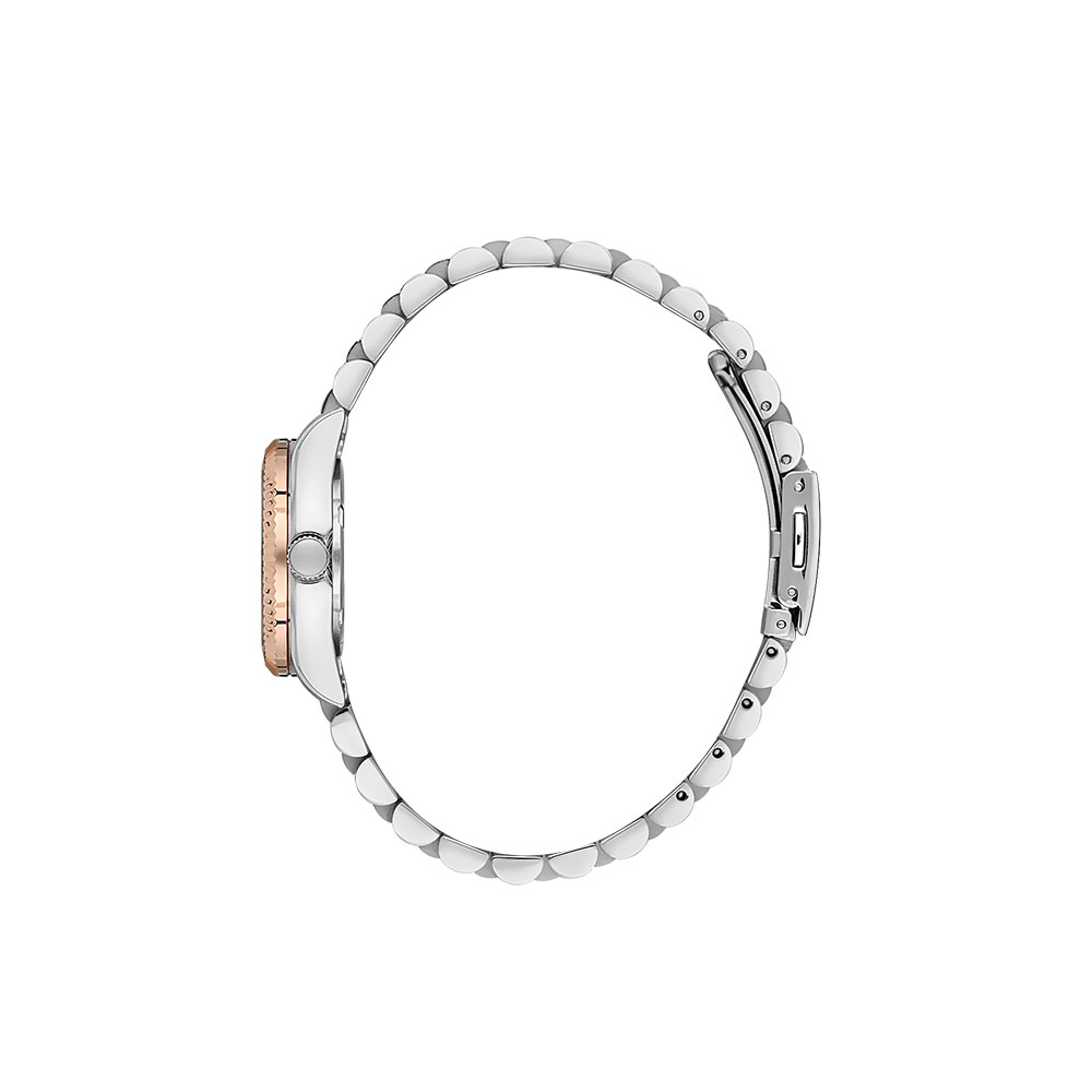 Bratara din otel inoxidabil este bicolora, in tonuri de auriu rose si argintiu, oferind o versatilitate excelenta pentru diverse tinute. Cu o lungime de 190 mm si o latime de 16 mm, aceasta se fixeaza sigur cu un sistem de inchidere tip fluture, oferind confort pe durata intregii zile.
