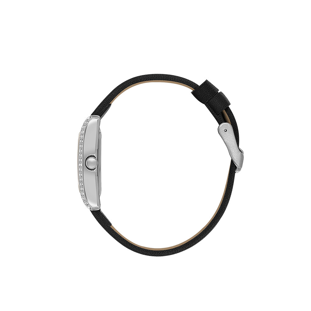 Bratara din piele neagra, cu o lungime de 175 mm si latime de 17 mm, este prevazuta cu sistem de inchidere tip catarama, oferind confort si siguranta in purtare. Cu o rezistenta la apa de 3 ATM, ceasul este potrivit pentru utilizarea zilnica, pastrand totodata un aspect impecabil.