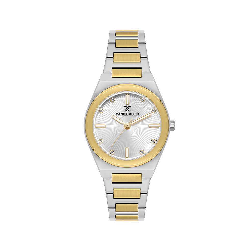 Ceasul de dama Daniel Klein Premium DK.1.13900.5 imbina cu rafinament designul modern cu functionalitatea precisa, fiind alegerea ideala pentru femeile care apreciaza detaliile fine si eleganta discreta. Cu o carcasa rotunda din aliaj metalic in nuanta aurie si un cadran argintiu decorat cu accente subtile si marcaje cu pietre, acest ceas adauga un plus de stil oricarei tinute casual sau business.