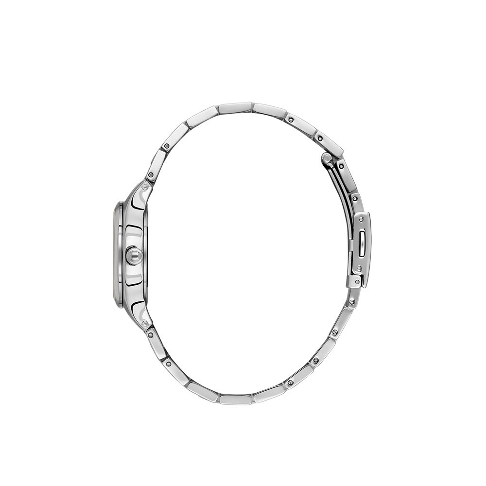 Bratara din otel inoxidabil in ton argintiu este durabila si placuta la atingere, fiind prevazuta cu sistem de inchidere tip fluture pentru o fixare sigura si rapida. Mecanismul quartz japonez Miyota 2035 garanteaza o precizie ridicata, cu o abatere de ±20 secunde/luna, fiind perfect pentru utilizarea zilnica.
