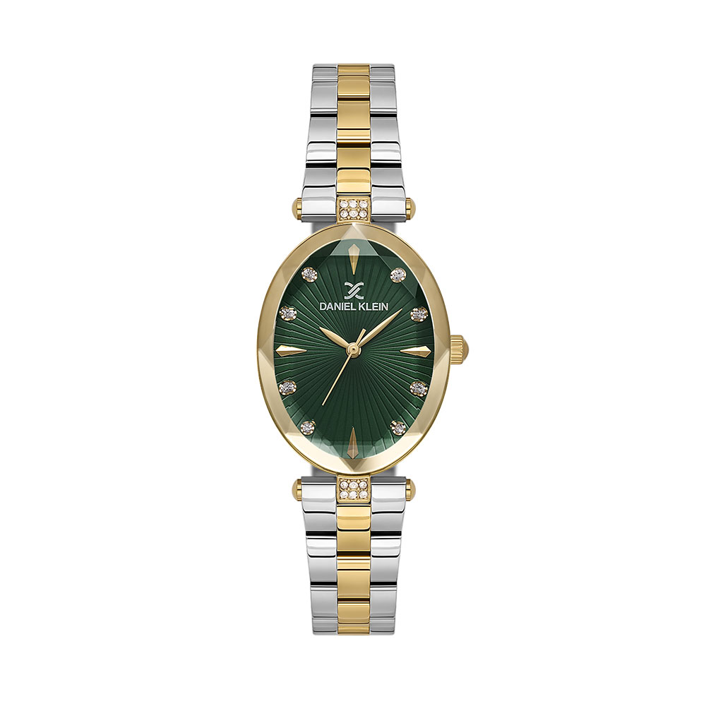 Ceasul de dama Daniel Klein Premium DK.1.13954.4 imbina eleganta moderna cu rafinamentul clasic, fiind alegerea ideala pentru femeile care apreciaza accesoriile cu personalitate. Cu un design fashion si o forma ovala delicata, acest model se remarca prin cadranul verde intens, decorat cu marcaje stralucitoare ce adauga un plus de feminitate si stil.