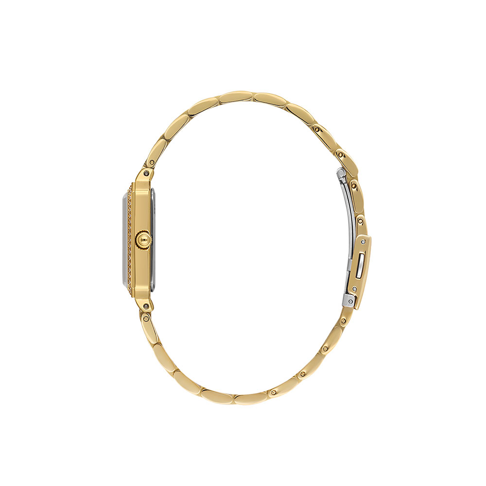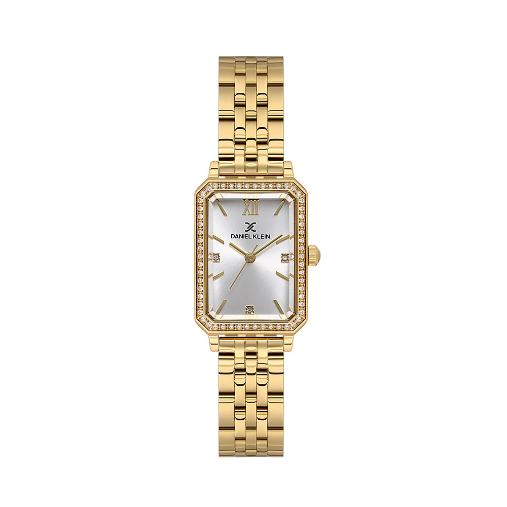 Ceasul de dama Daniel Klein Premium DK.1.13970.2 imbina eleganta clasica cu detalii moderne, fiind alegerea ideala pentru femeile care apreciaza stilul sofisticat si rafinat. Designul sau fashion se remarca prin carcasa dreptunghiulara aurie, conturata discret de un rand de cristale fine care adauga un plus de stralucire oricarei tinute.