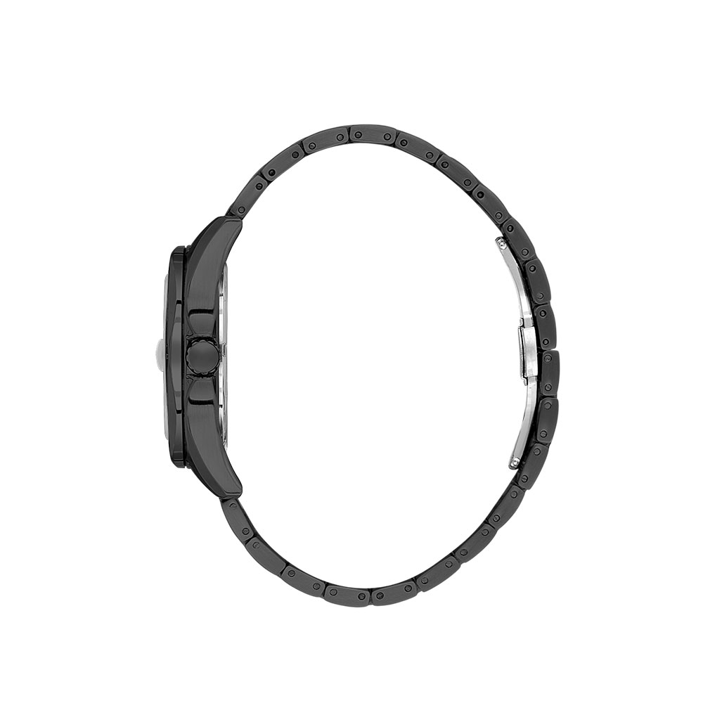 Bratara din otel inoxidabil de culoare neagra, cu o latime de 21 mm si sistem de inchidere tip fluture, ofera confort si siguranta la purtare. Mecanismul Quartz Miyota 2315, de provenienta japoneza, garanteaza o precizie remarcabila, cu o abatere de ±20 secunde/luna.