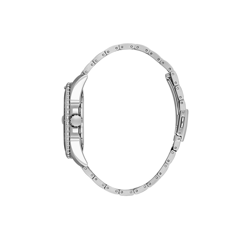 Bratara din otel inoxidabil argintiu cu sistem de inchidere tip fluture garanteaza confort si siguranta in purtare. Ceasul este rezistent la apa pana la 5 ATM, fiind potrivit pentru activitati zilnice si contact ocazional cu apa.