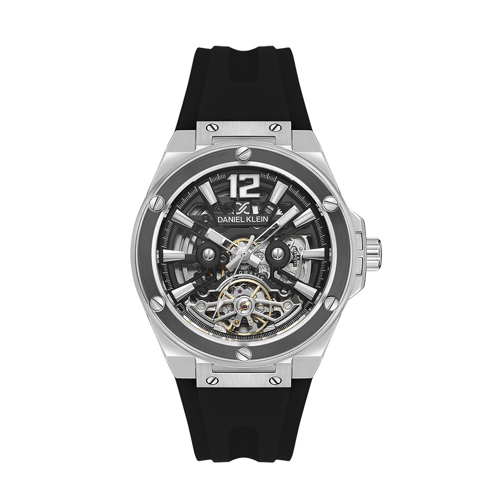 Ceasul Daniel Klein Skeleton DK.1.13888.1 este alegerea ideala pentru barbatii care apreciaza designul sportiv combinat cu tehnologia mecanica traditionala. Cu un aspect robust si detalii atent lucrate, acest model se remarca prin mecanismul automatic vizibil, integrat intr-un cadran negru de tip skeleton, care evidentiaza complexitatea si precizia constructiei sale.