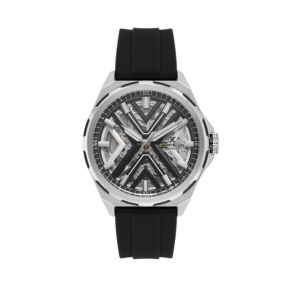 Ceasul de mana Daniel Klein Skeleton DK.1.14017.1 este alegerea ideala pentru barbatii care apreciaza designul sportiv, dar si complexitatea mecanismelor de precizie. Parte din colectia Skeleton, acest model impresioneaza prin carcasa rotunda de 44 mm realizata din aliaj metalic, cu un finisaj negru elegant si accente argintii, completata de un cadran negru semi-transparent care evidentiaza detaliile mecanismului automatic elvetian ETA 2700.