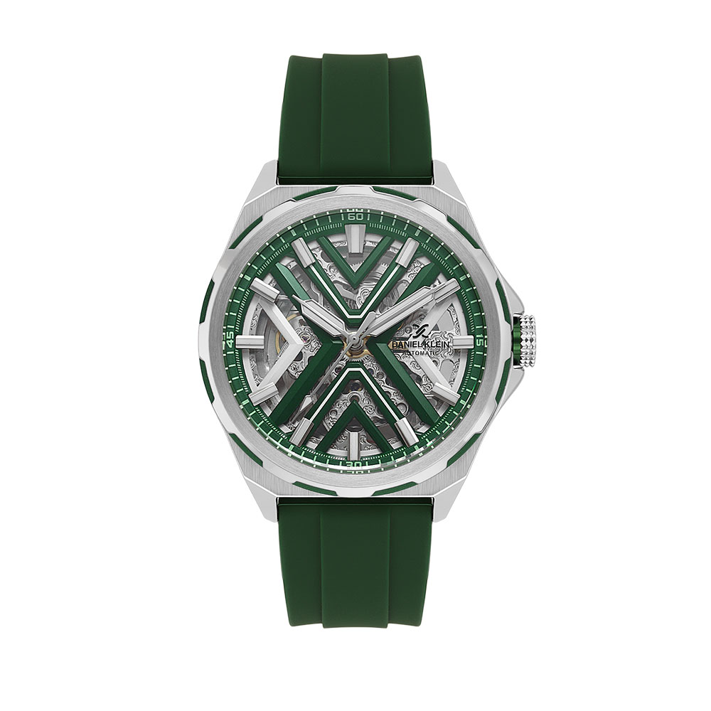 Carcasa rotunda din aliaj metalic, cu un diametru de 44 mm si o grosime de 13 mm, este completata de un cadran verde translucid cu elemente skeleton, ce ofera o privire captivanta asupra mecanismului intern ETA 2700. Geamul din cristal mineral protejeaza cadranul si adauga un plus de rezistenta la zgarieturi.