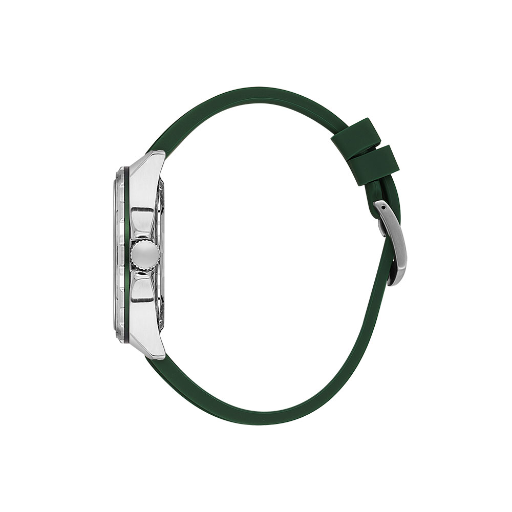 Cureaua din silicon verde, cu lungimea de 210 mm si latimea de 21 mm, ofera un confort excelent si un look sportiv, fiind ideala pentru purtarea zilnica. Sistemul de inchidere cu catarama asigura o fixare sigura si rapida.