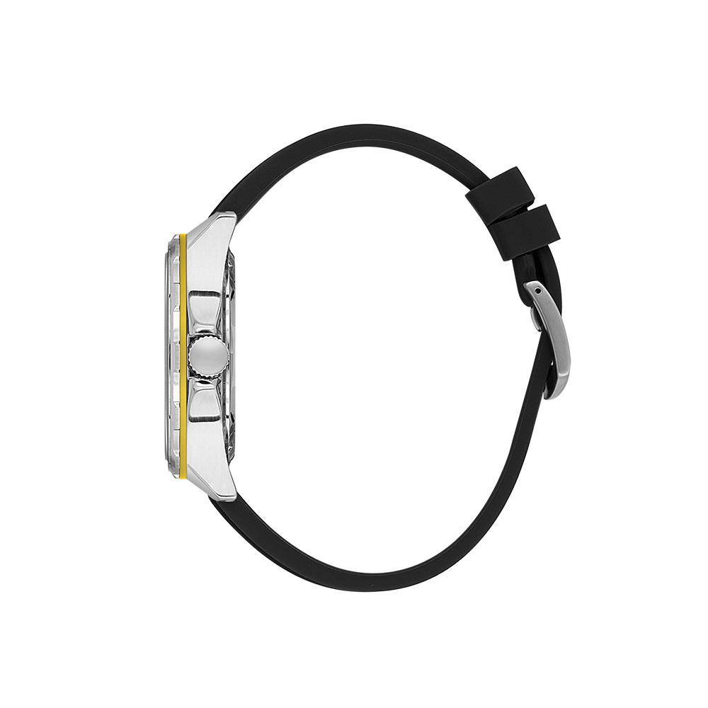 Cu o carcasa de 44 mm si o grosime de 13 mm, acest ceas ofera o prezenta puternica pe incheietura, fiind ideal pentru tinute casual sau sport. Sistemul de inchidere cu catarama asigura o fixare sigura si rapida, iar lungimea bratarii de 210 mm permite o potrivire confortabila pentru majoritatea utilizatorilor.