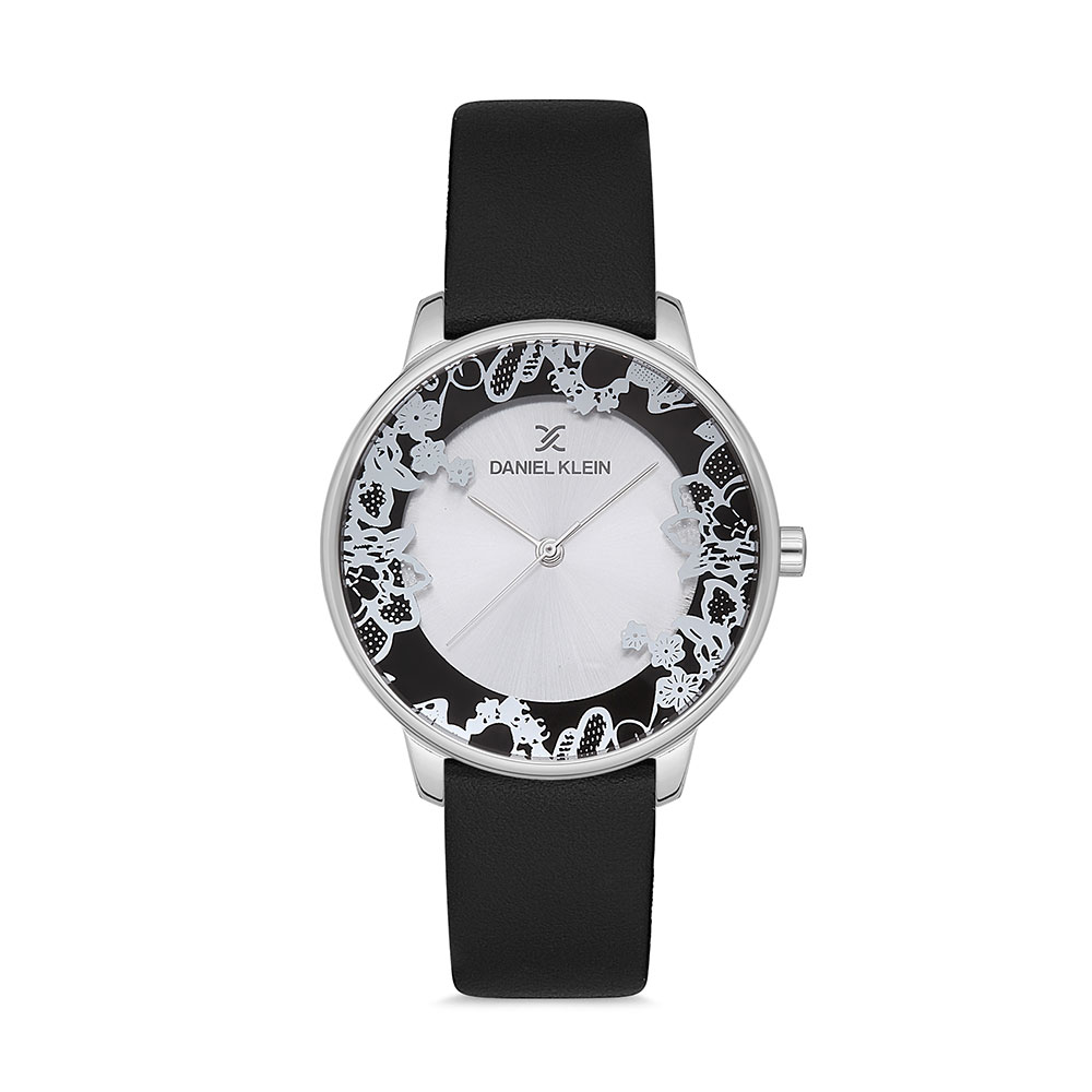 Cadranul argintiu este accentuat de un bezel decorat cu motive florale in nuante contrastante de alb si negru, adaugand un aer delicat si romantic. Cu un diametru de 35 mm si o forma rotunda, acest ceas este ideal pentru incheieturile fine, oferind un aspect echilibrat si elegant.