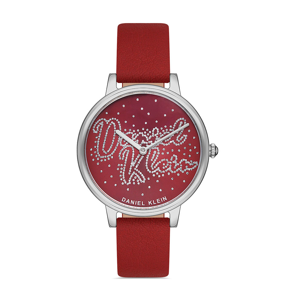 Ceasul dispune de un cadran rotund rosu, decorat cu un model stralucitor format din cristale fine, ce adauga un efect spectaculos. Logo-ul Daniel Klein este integrat intr-un design unic, oferind un plus de personalitate acestui model. Carcasa din aliaj metalic argintiu completeaza perfect estetica acestui ceas, oferindu-i un aspect sofisticat si versatil.
