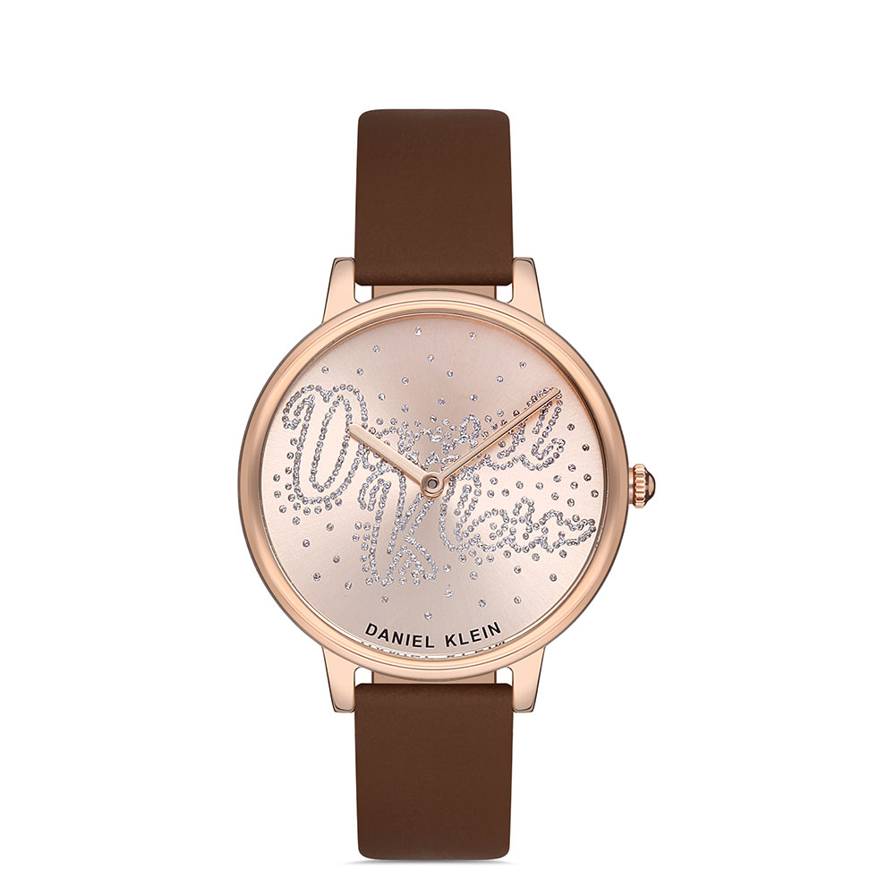 Cadranul auriu rose este decorat cu cristale stralucitoare ce contureaza logo-ul Daniel Klein, oferind un aspect luxuriant si feminin. Geamul din cristal mineral protejeaza designul elegant si asigura rezistenta la zgarieturi.