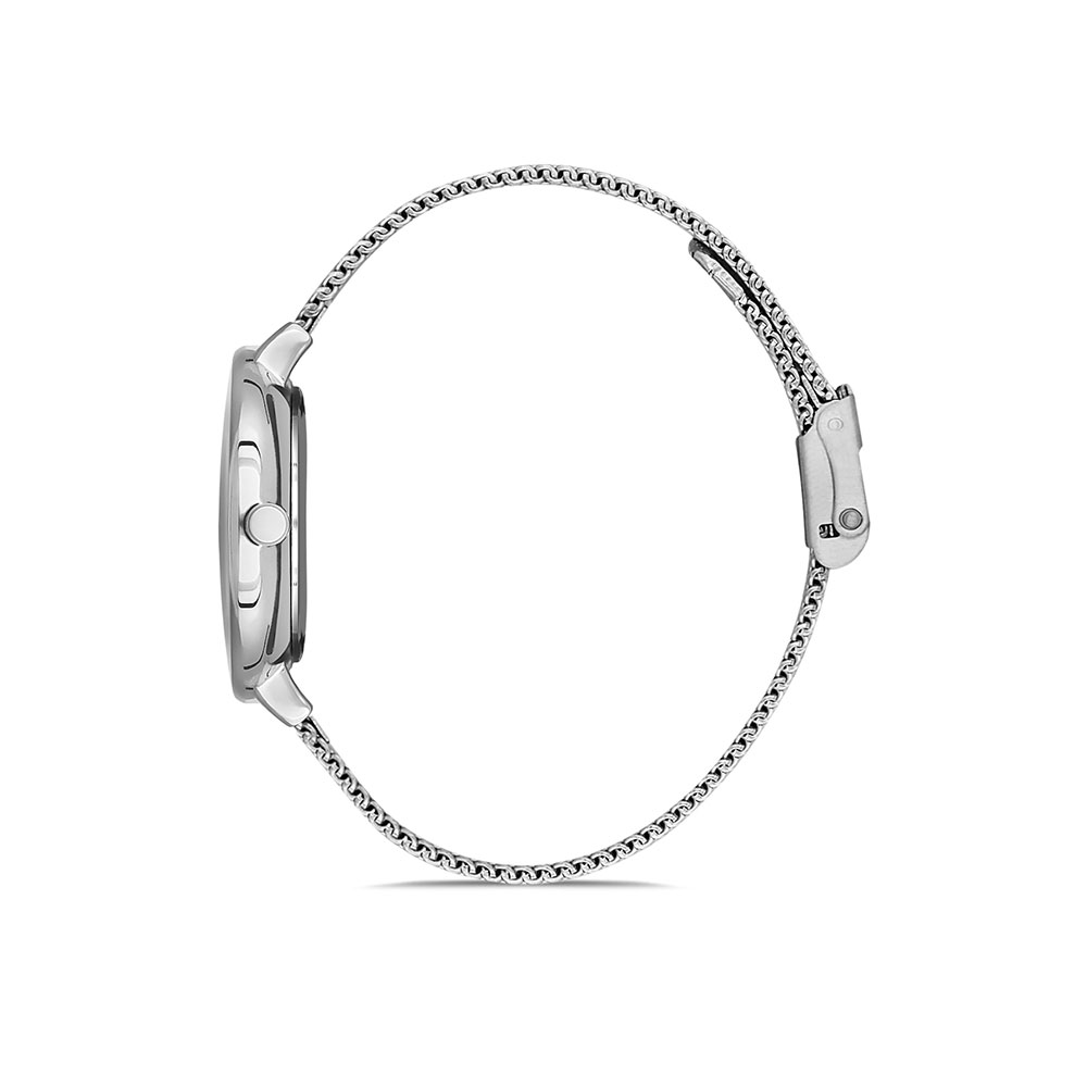 Cadran decorat cu inimioara si puncte; bratara tip mesh, cu inchizatoare reglabila.