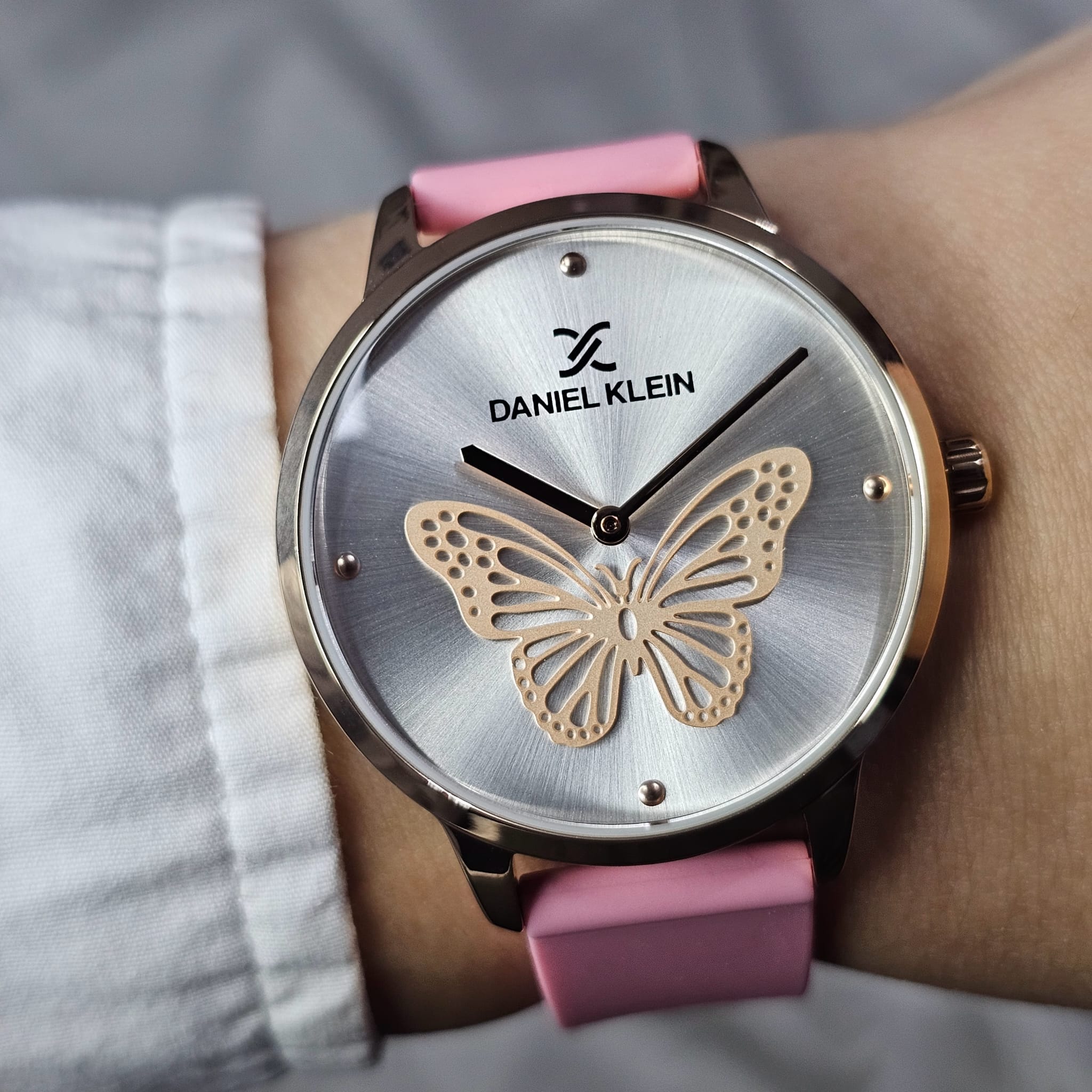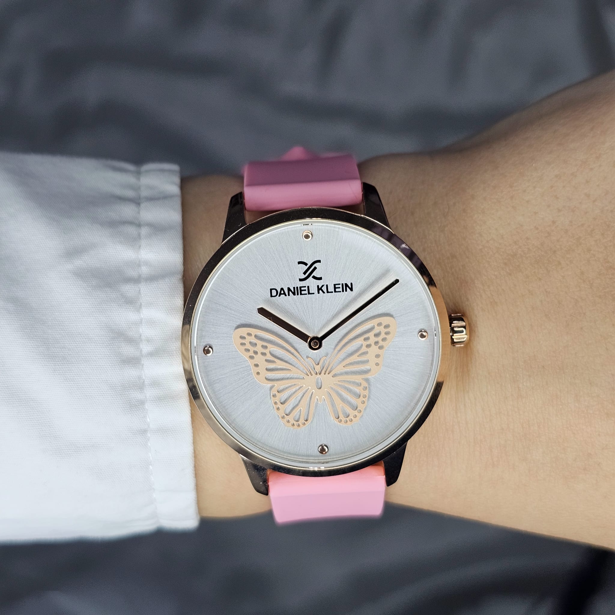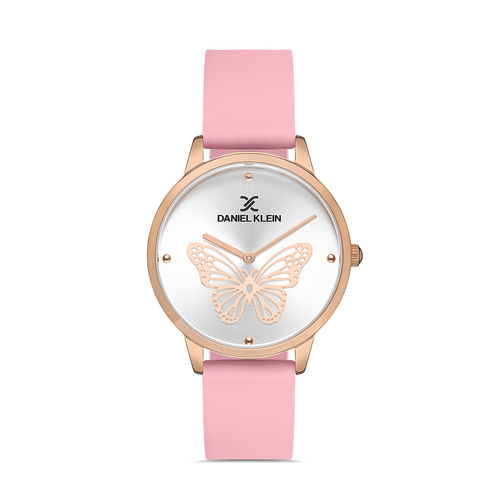 Cadranul argintiu este decorat cu un fluture 3D subtil, un simbol al feminitatii si al gratiei. Acest detaliu unic adauga un plus de sofisticare, transformand ceasul intr-o adevarata piesa de arta. Carcasa rotunda, realizata din aliaj metalic, are un finisaj auriu rose, conferindu-i un aer luxos si modern.