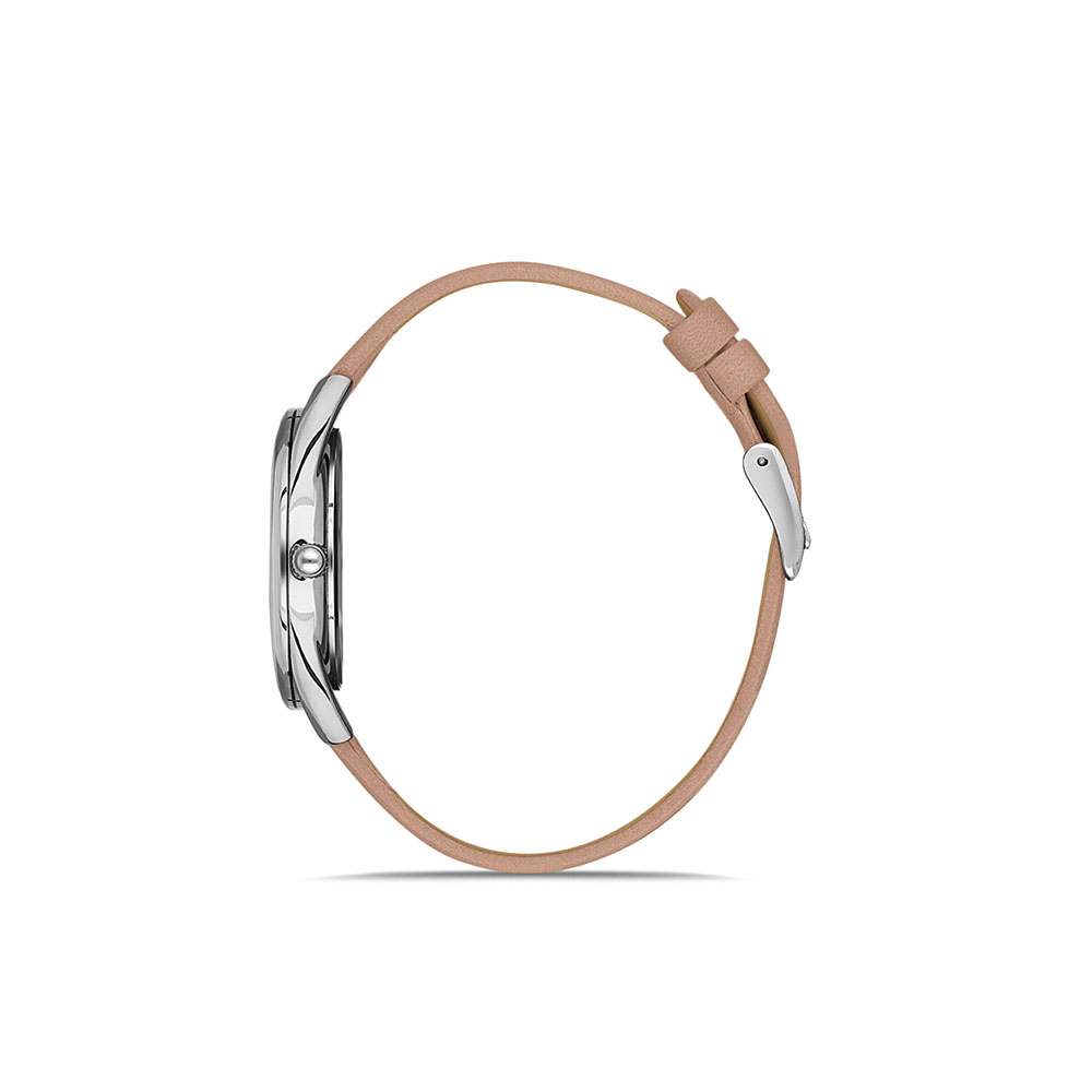 Cureaua din piele roz este moale si confortabila, adaptandu-se perfect incheieturii pentru un plus de comoditate pe parcursul intregii zile. Sistemul de inchidere cu catarama asigura o fixare sigura si usoara.
