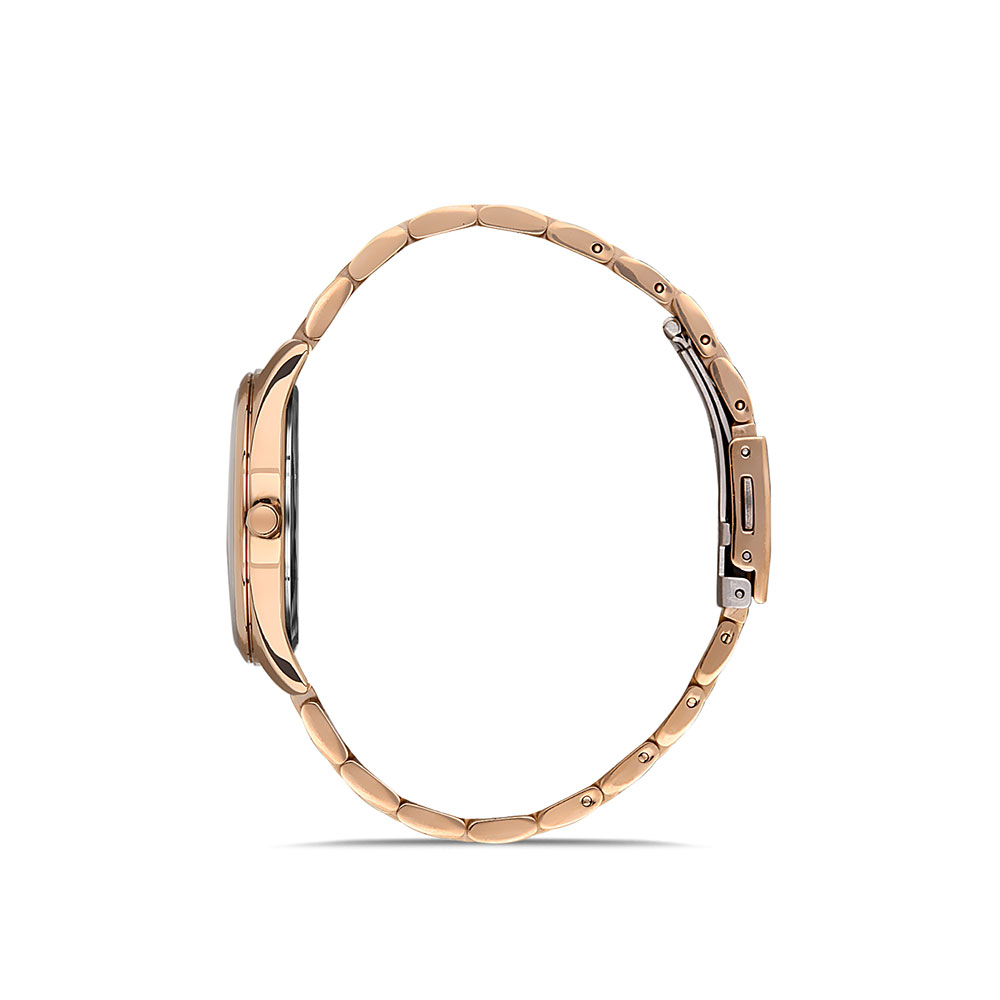 Bratara ceasului se muleaza perfect pe orice mana, iar culoarea auriu rose adauga o nota eleganta tinutei tale.