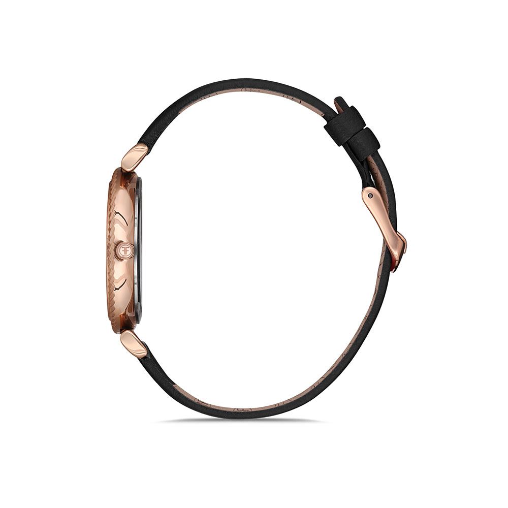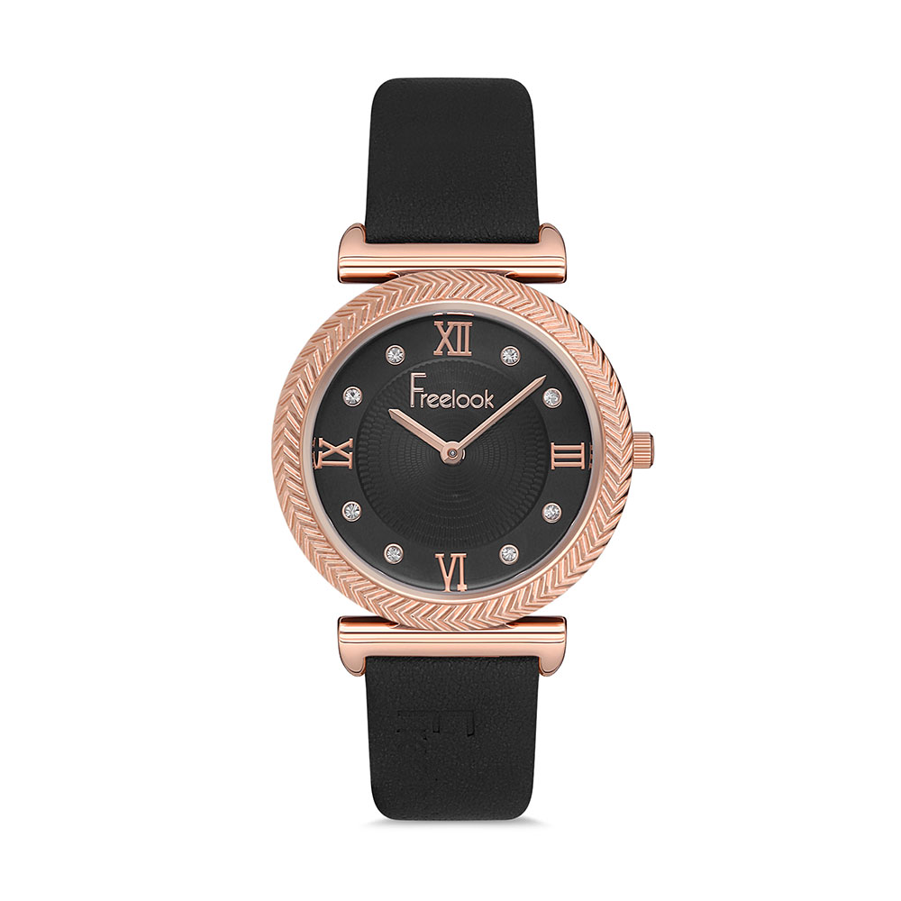Colectia Belle de la Freelook este definita prin simplitatea eleganta si detalii sofisticate. Carcasa rotunda din auriu rose si cadranul negru accentuat de cristale minerale adauga un plus de stralucire, in timp ce cureaua din piele neagra asigura confort si durabilitate. Mecanismul quartz japonez garanteaza o abatere minima, facand din acest ceas un companion de incredere in gestionarea timpului.