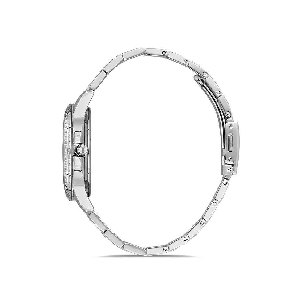 Designul elegant este completat de o bratara din otel inoxidabil in culoare argintie, cu sistem de inchidere tip fluture, care asigura confort si securitate pe incheietura mainii. Rezistenta la apa de pana la 5 atm il face ideal pentru uz cotidian, indiferent de vreme.