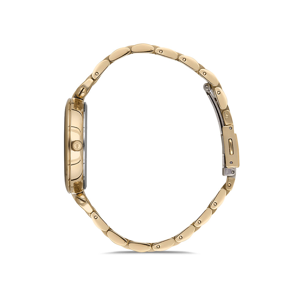 Featuring a mecanism Quartz cu provenienta japoneza, acest ceas ofera precizie si durabilitate, avand o abatere de doar ±20 secunde pe luna. Carcasa rotunda din alama aurie si bratara din otel inoxidabil in culoare aurie subliniaza un stil casual, dar distinct.