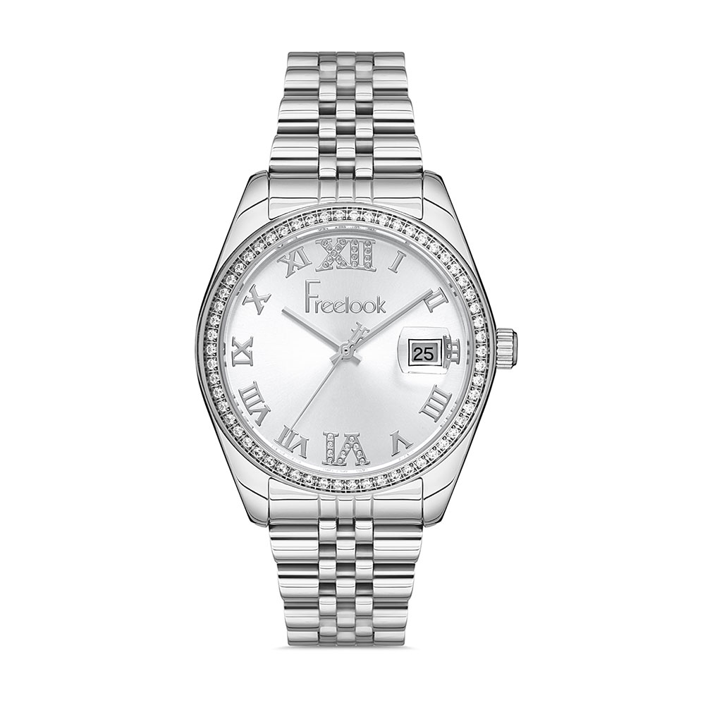 Designul sau sofisticat include o carcasa si bratara din otel inoxidabil argintiu, ce subliniaza un cadran argintiu decorat cu cifre romane. Geamul din cristal mineral rezistent si rezistenta la apa de 5 atm il fac ideal pentru utilizare zilnica, indiferent de conditii. In plus, ceasul dispune de o afisare eleganta a datei, plasata discret pe cadran.