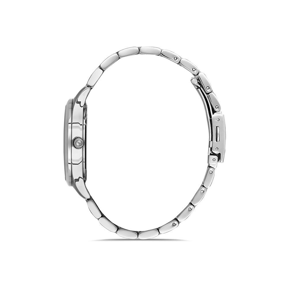 - Materialul carcasei si al bratarii din otel inoxidabil, in culoare argintiu, ofera un aspect luxos si rezistenta la apa de pana la 5 atm.