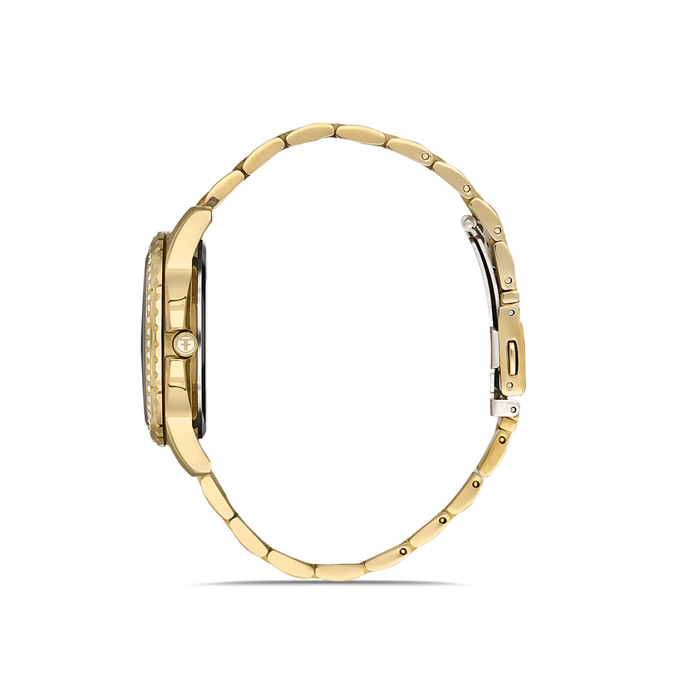 Ceasul este completat de o bratara din otel inoxidabil aurit, ce asigura durabilitate si confort, in timp ce sistemul de inchidere tip fluture permite o ajustare usoara si sigura. Rezistenta la apa de pana la 5 atm il face ideal pentru uz zilnic, indiferent de vreme.