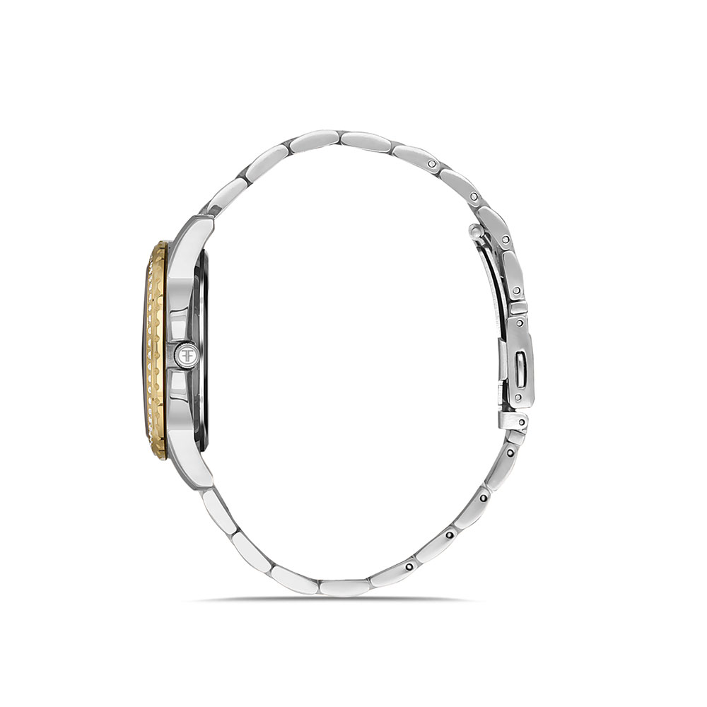 Cu un mecanism quartz japonez de inalta precizie, ceasul promite o abatere de maximum ±20 secunde pe luna, asigurand fiabilitate si acuratete. Afisajul analogic, impreuna cu geamul din cristal mineral durabil, ofera o vizibilitate clara si o rezistenta superioara. Designul bicolor al bratarii din otel inoxidabil, impreuna cu carcasa argintie rotunda incadrata de detalii aurii, reflecta o eleganta atemporala.