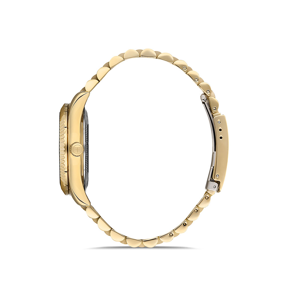 Cu un mecanism Quartz de provenienta japoneza, ceasul este extrem de precis, avand o abatere de doar ±20 de secunde pe luna. Afisajul analogic este completat de o carcasa din alama aurie si o bratara din otel inoxidabil, ce subliniaza luxul si durabilitatea. Geamul din cristal mineral protejeaza ceasul impotriva zgarieturilor, asigurand claritate maxima.