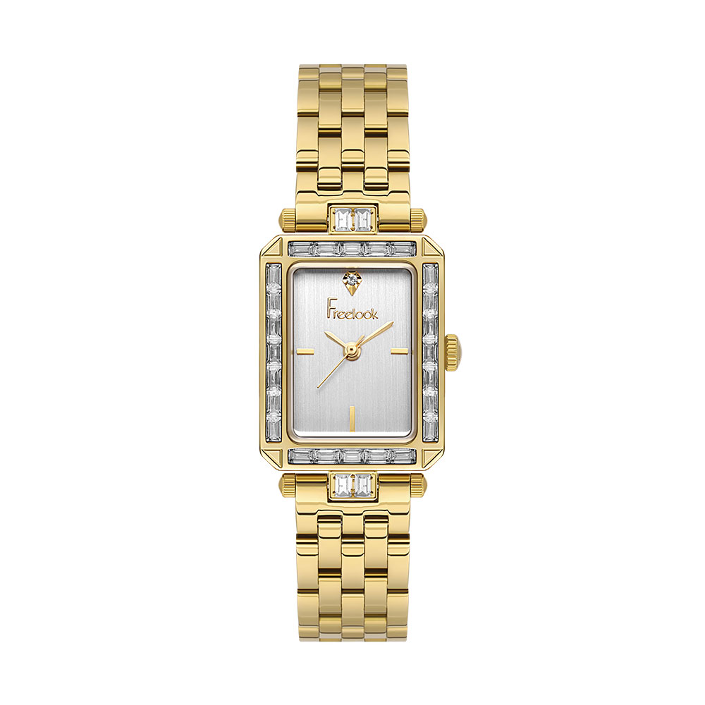 Fiecare detaliu al Ceasului Freelook Charmant este meticulos gandit pentru a oferi nu doar un accesoriu, ci o parte din povestea personala. Cadranul argintiu stralucitor este incadrat de o carcasa aurie din otel inoxidabil, accentuata de cristale minerale ce sporesc farmecul oricarei tinute. Cu o rezistenta la apa de 5 atm, acest ceas este perfect pentru activitati cotidiene, protejandu-te in fata intemperiilor.