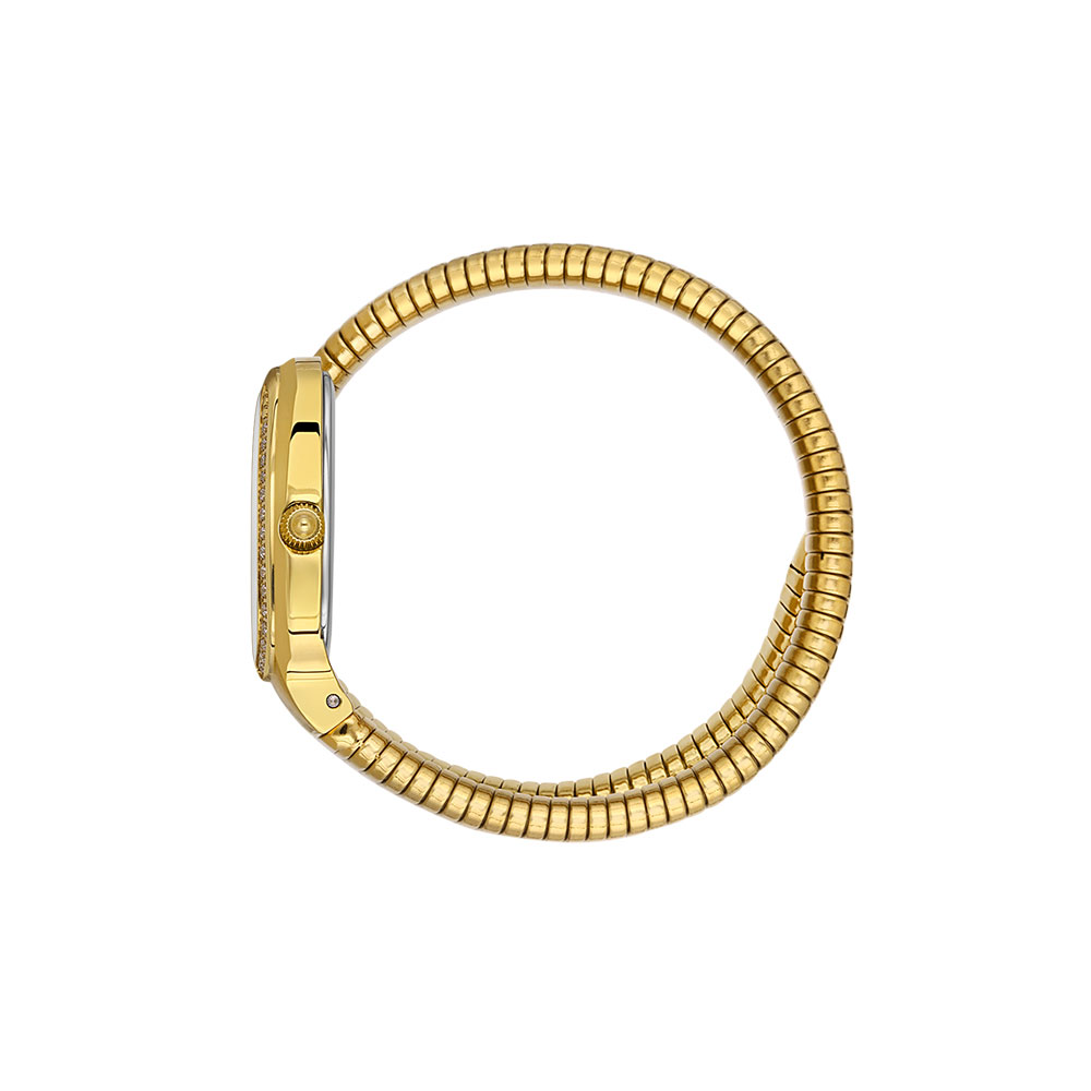 Bratara din otel inoxidabil, finisata in culoare aurie, este ajustabila si se muleaza perfect pe incheietura, oferind confort maxim pe durata purtarii. Rezistenta la apa de pana la 5 atm face ceasul potrivit pentru activitati cotidiene, protejandu-l impotriva apei la spalatul pe maini sau ploaie.