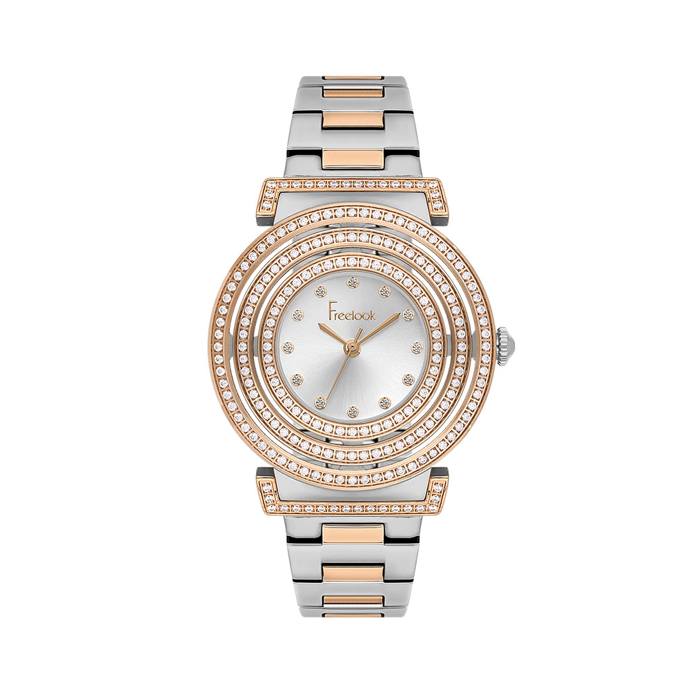 Ceasul de dama Freelook Charmant FL.1.10501.6 imbina rafinamentul estetic cu functionalitatea moderna, fiind alegerea ideala pentru femeile care apreciaza eleganta si stilul fashion. Realizat din otel inoxidabil de inalta calitate, acest model se remarca prin finisajul bicolor argintiu si auriu rose, completat de un cadran argintiu sofisticat si decorat cu cristale stralucitoare ce adauga un plus de glamour tinutelor tale.