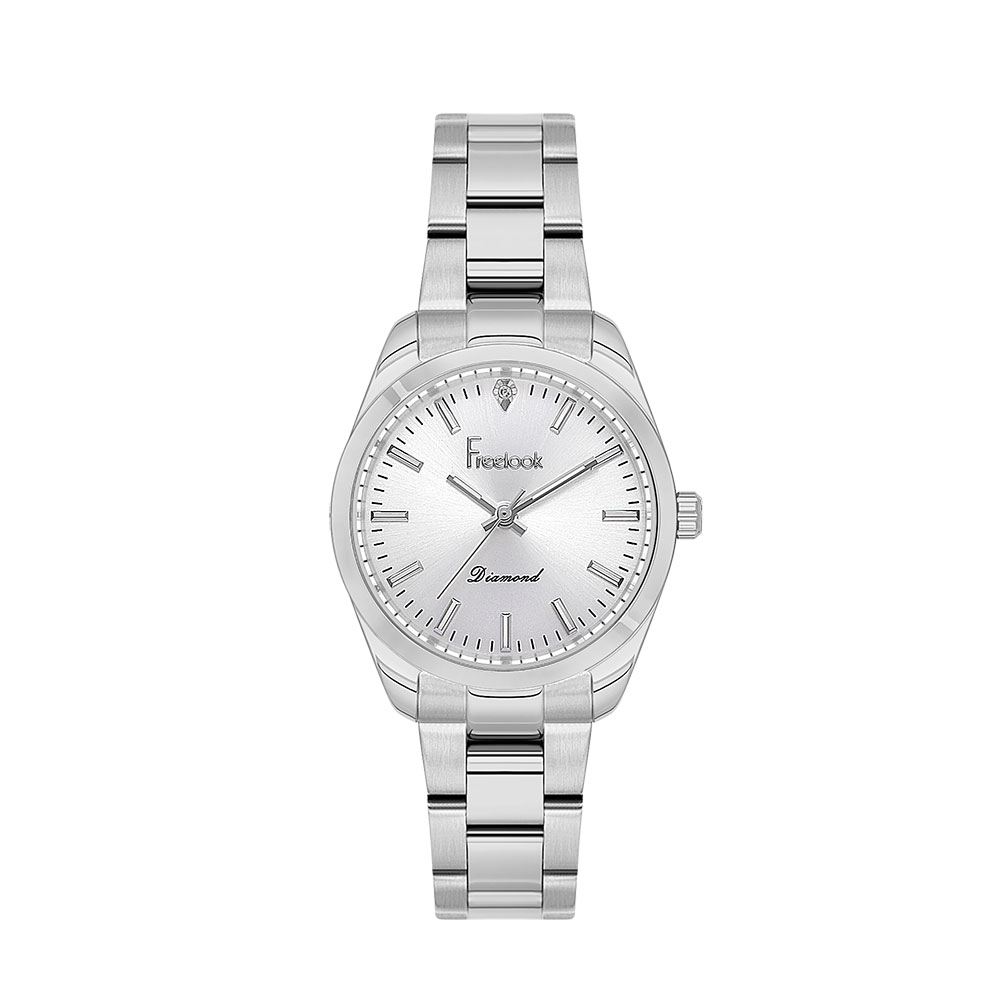 Colectia Diamond de la Freelook imbina eleganta clasica cu accente moderne, fiind perfecta pentru orice garderoba. Cadranul argintiu, luminos si curat, este accentuat de o carcasa si o bratara din otel inoxidabil care confera durabilitate si un aspect premium.Modelul impresioneaza printr-un diamant amplast la ora doisprezece si ofera o eleganta aparte acestui ceas.