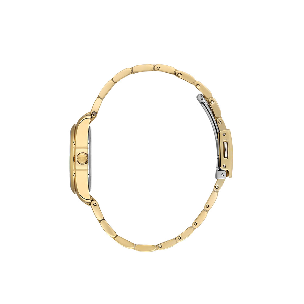 Acest model impresioneaza prin mecanismul Quartz Miyota 2035 de provenienta japoneza, cunoscut pentru precizia sa exceptionala, avand o abatere de doar ±20 de secunde pe luna. Afisajul analogic, amplasat pe un cadran argintiu elegant, este protejat de un cristal mineral durabil. Carcasa din otel inoxidabil auriu si bratara metalica cu inchidere tip fluture subliniaza designul sofisticat si durabil al ceasului.Deasemenea modelul impresioneaza printr-un diamant amplast la ora doisprezece si ofera o eleganta aparte acestui ceas.