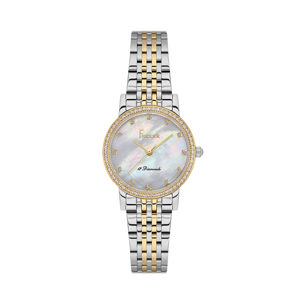 Dotat cu un mecanism quartz de precizie japonez (Miyota 2035), ceasul Freelook Lumiere promite o abatere minima de ±20 secunde pe luna, asigurand acuratete si fiabilitate. Afisajul analogic, completat de un cadran sidef cu detalii delicate, este incadrat de o carcasa din otel inoxidabil argintiu cu un diametru de 28 mm, ce se potriveste perfect pe orice incheietura. Bratara din otel inoxidabil, cu un design argintiu si accente aurii, este finisata cu un sistem de inchidere tip fluture, usor de manevrat si sigur.