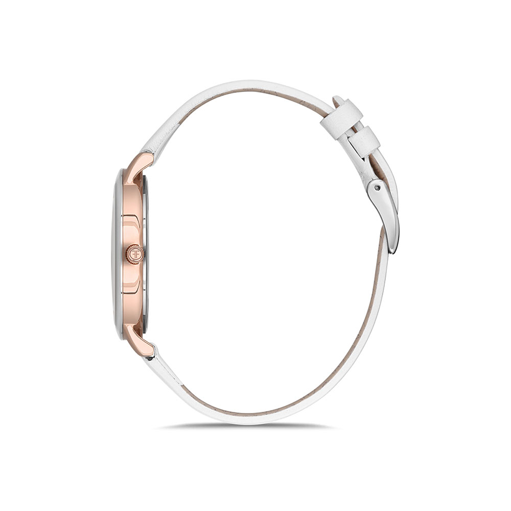 Colectia Eiffel este inspirata de structura iconica a Turnului Eiffel, simbolizand inovatia si frumusetea. Cu un design minimalist si o carcasa rotunda din alama aurie rose, ceasul este completat de o curea din piele alba ce asigura confort si durabilitate. Afisajul analogic cu detalii in culoarea aurului rose pe un fundal argintiu adauga o nota de sofisticare.