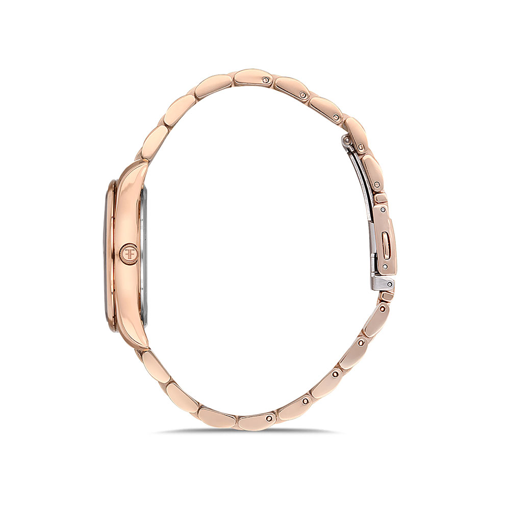 Cadran decorat cu zirconii; bratara tip zale, cu inchizatoare tip fluture, avand lungimea utila 18 cm si latimea 1.8 cm.