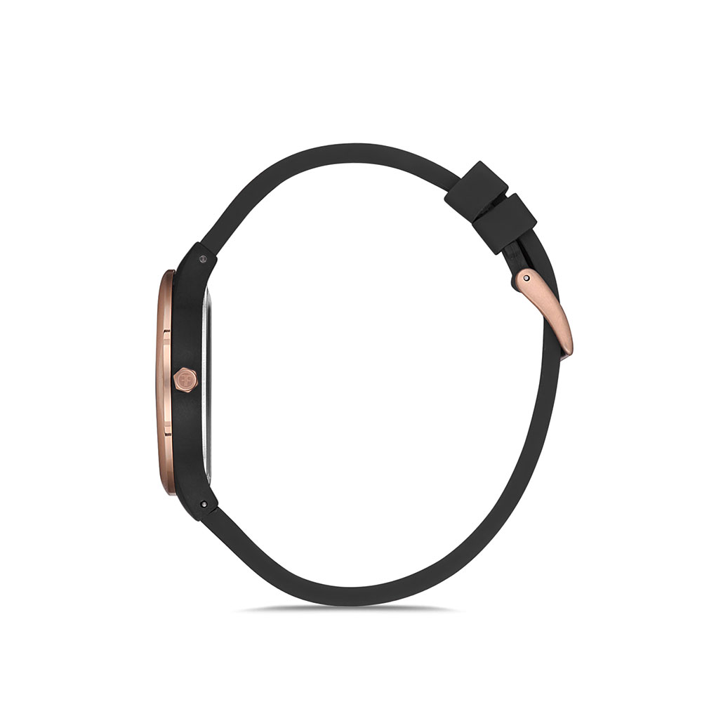 Curea de silicon neagra asigura confortul pe durata purtarii, iar rezistenta la apa de pana la 5 bar il face potrivit pentru activitatile cotidiene. Cu o latime de carcasa de 36 mm si o lungime de 44 mm, ceasul se potriveste perfect pe incheietura mainii, oferind un echilibru ideal intre dimensiune si vizibilitate.