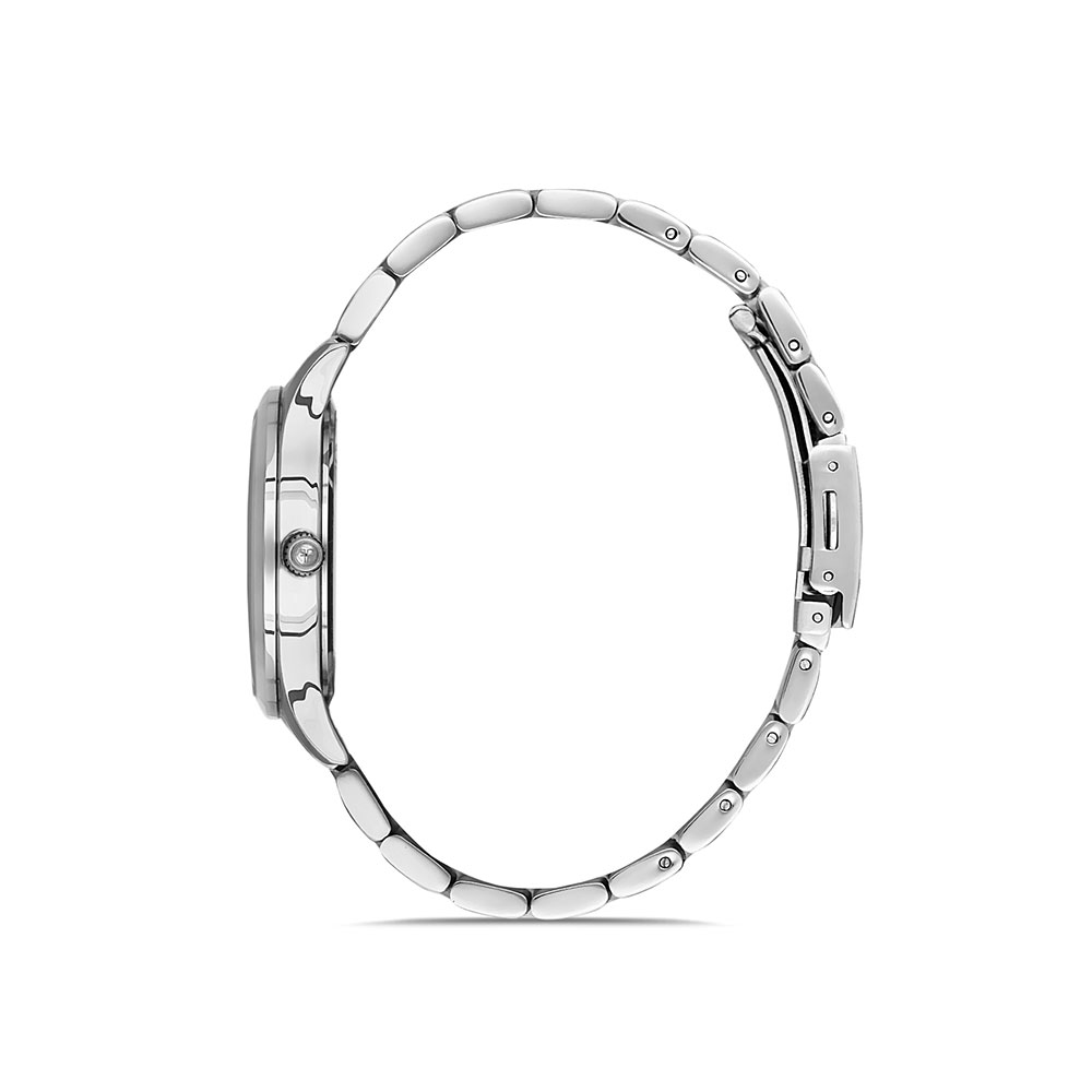 Carcasa rotundă din aliaj metalic argintiu și brățara bicolore din oțel inoxidabil conferă un aspect modern și versatil, potrivit pentru orice ocazie. Rezistența la apă de 5 atm face ceasul ideal pentru uz zilnic, rezistând cu ușurință la ploaie sau la contactul accidental cu apa.