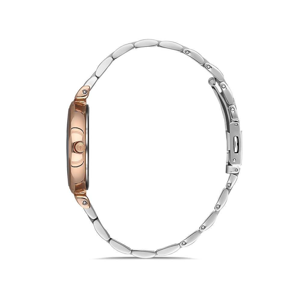 Dotat cu un mecanism japonez de precizie (model Vj21c1) si o rezistenta la apa de 5 atm, ceasul promite durabilitate si fiabilitate. Cadranul in nuanta de sidef este accentuat de carcasa rotunda din alama cu finisaj in culoare auriu rose, iar bratara bicolora din otel inoxidabil asigura confortul pe durata purtarii. Sistemul de inchidere tip fluture este usor de manevrat, oferind securitate si stil.