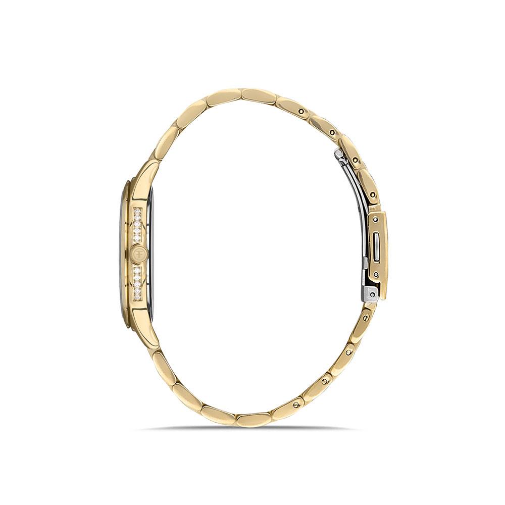Cu un mecanism quartz japonez de inalta precizie, rezistenta la apa de 5 atm si un design chic, acest ceas este ideal pentru orice ocazie, fie ea o zi la birou sau o seara eleganta in oras. Cadranul negru este perfect contrastat de carcasa si bratara aurie, oferind un aspect luxuriant si modern.