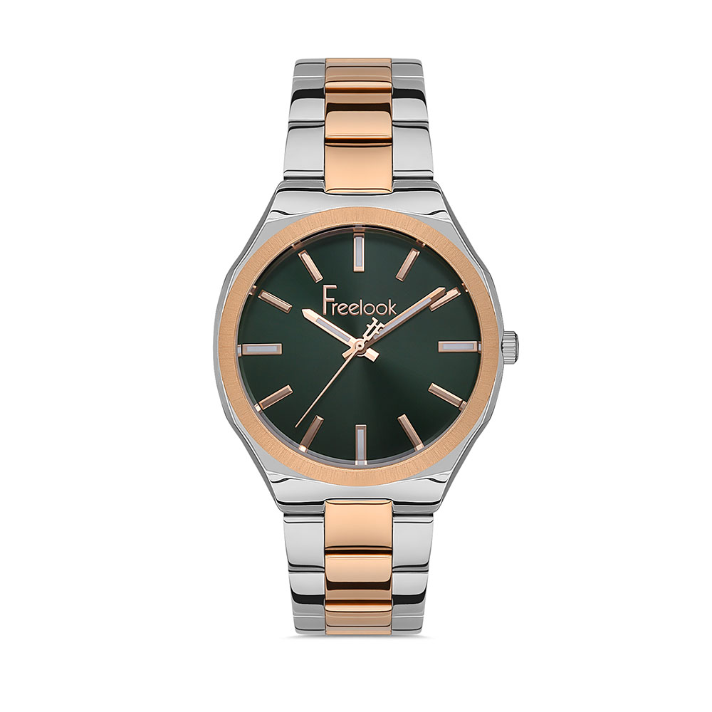 Caracteristicile sale includ un mecanism Quartz japonez de inalta precizie cu o abatere de ±20 secunde pe luna, garantand acuratetea timpului. Cadranul verde este protejat de un cristal mineral durabil, iar carcasa din alama argintie impreuna cu bratara din otel inoxidabil in nuanta de auriu rose subliniaza un design elegant si modern.